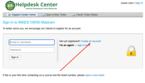 1. Buka portal Helpdeskhttps://helpdesk.inkesyarsimataram.ac.id.
